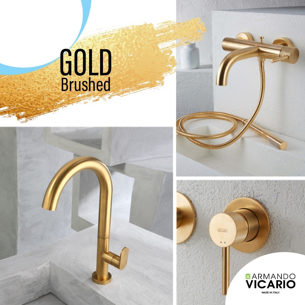 Η ευγενής απλότητα. Ο νέος χρωματισμός Gold Brushed είναι μια κορυφαία αισθητική πρόταση που χαρίζει στο μπάνιο σας μια μοναδική αίσθηση πολυτέλειας. Σε αυτό το φινίρισμα όπως και στα άλλα 2 που ακολουθούν θα πρέπει να είμαστε πολύ προσεχτικοί με τον καθαρισμό των προϊόντων, με τα χημικά που χρησιμοποιούμε καθώς είναι ένα χρώμα που παρουσιάζει τεράστιες ευαισθησίες αν δεν το συντηρούμε σωστά. Σωστός εξαερισμός και καθαρισμός με ήπια καθαριστικά είναι απαραίτητα στοιχεία για την μακροχρόνια συντήρηση του.