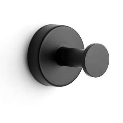 Άγκιστρο μονό για πετσέτες μπάνιου σε Μαύρο Ματ φινίρισμα κατασκευασμένο εξ ολοκλήρου από Ανοξείδωτο ατσάλι χάλυβα άριστης ποιότητας Inox 304 & 18/10.Το αξεσουάρ μπορεί να τοποθετηθεί με ταινία 3M που κρατάει βάρος μέχρι 1Kg ή βιδωτά. Συμπαγή και στέρεο προϊόν, φτιαγμένο για παντοτινή χρήση 100% στέρεο υλικό με τέλειο φινίρισμα καθρέφτη χωρίς γαλβανική επίστρωση. Έχει Διαστάσεις: 5.5 x 5.5 x 5.2 cm
