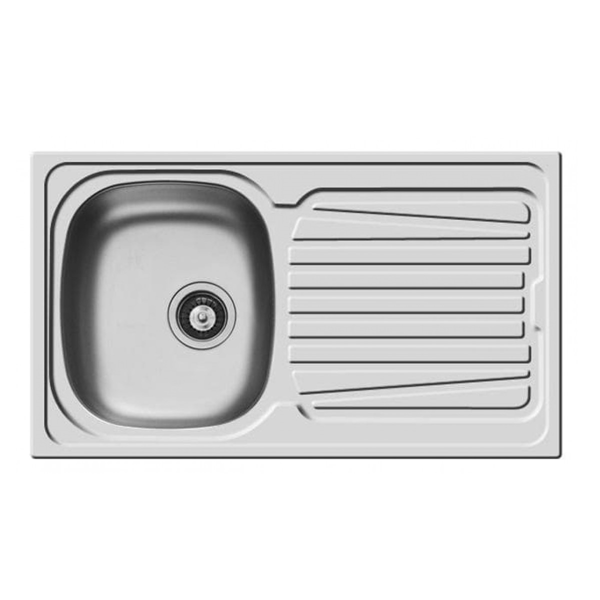 Τετράγωνος σχεδιασμός για την κουζίνα από ανοξείδωτο ατσάλι μήκους 79.0cm και πλάτους 50.00cm.H εσωτερική διάσταση της γούρνας είναι 34cm x 40cm x 15cm.Διαθέτει 1 βαλβίδα υπερχείλισης Φ.92,Σίφον για 1 γούρνα καθώς και Ερμάριο** μήκους 45cm.Η τοποθέτηση του Νεροχύτη είναι Ένθετη(η περίμετρος του νεροχύτη μετά την εγκατάσταση εμφανίζεται πάνω στην επιφάνεια του πάγκου).