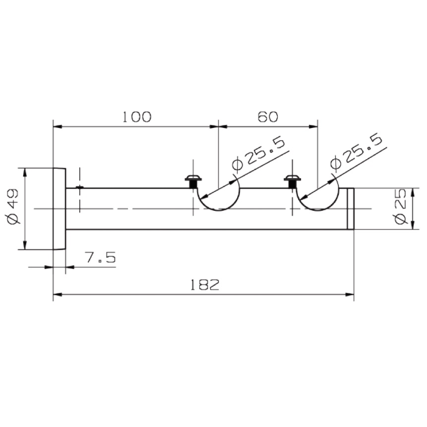 Συσκευασία :Το σετ περιλαμβάνει:τον σωλήνα βαρέος τύπου Φ.25 διαμέτρου 25mm και πάχους 1mm(ενός χιλιοστού),2 διακοσμητικά άκρα,τους κρίκους(δέκα ανά μέτρο) και 2 στηρίγματα μαζί με τις απαραίτητες βίδες,χούκς και ούπατ για την προσαρμογή τους στον τοίχο.