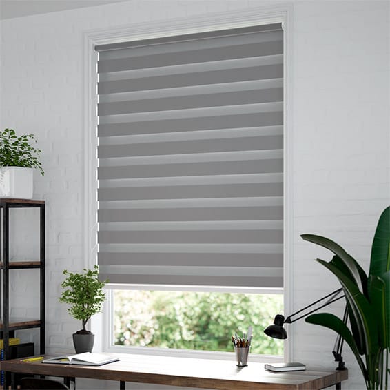 Ένα έξυπνο, κομψό και ευέλικτο ύφασμα για διπλό ρόλερ σε γκρι σκούρα απόχρωση αποτελεί την δημοφιλής επιλογή για το κάθε σύγχρονο σπίτι. Σχεδιασμένο με γνώμονα την πρακτικότητα, διαθέτει εναλλασσόμενες διάφανες και γκρι σκούρες λωρίδες από ύφασμα, επιτρέποντάς σας να ελέγχετε εύκολα το φως. Ευθυγραμμίστε τα σε οποιαδήποτε θέση θέλετε για να αφήσετε το φως να πλημμυρίσει ή να δημιουργήσετε ένα συμπαγές ρολό για να διατηρήσετε την ιδιωτική σας ζωή.