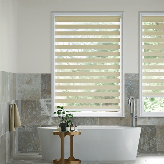 Ένα πανέμορφο ζεστό χρώμα με έξυπνη σχεδίαση, αυτό το μπεζ χρυσό διπλό ρόλερ σκίασης θα διατηρήσει το σπίτι σας φωτεινό και ευρύχωρο, αλλά ταυτόχρονα ιδιωτικό. Οι διάφανες και μπεζ χρυσές λωρίδες εναλλάσσονται για να εξασφαλίσουν την καλύτερη σκίαση για το σπίτι σας. Απλά ευθυγραμμίστε τα δύο υφάσματα με τον τρόπο που θέλετε για ανώτερο έλεγχο φωτισμού. Το χρυσό χρώμα προσθέτει ζεστασιά και μια άνετη αίσθηση, δημιουργώντας ένα φανταστικό και ευέλικτο ντύσιμο παραθύρων που δεν θα ξεφύγει ποτέ από τη μόδα.