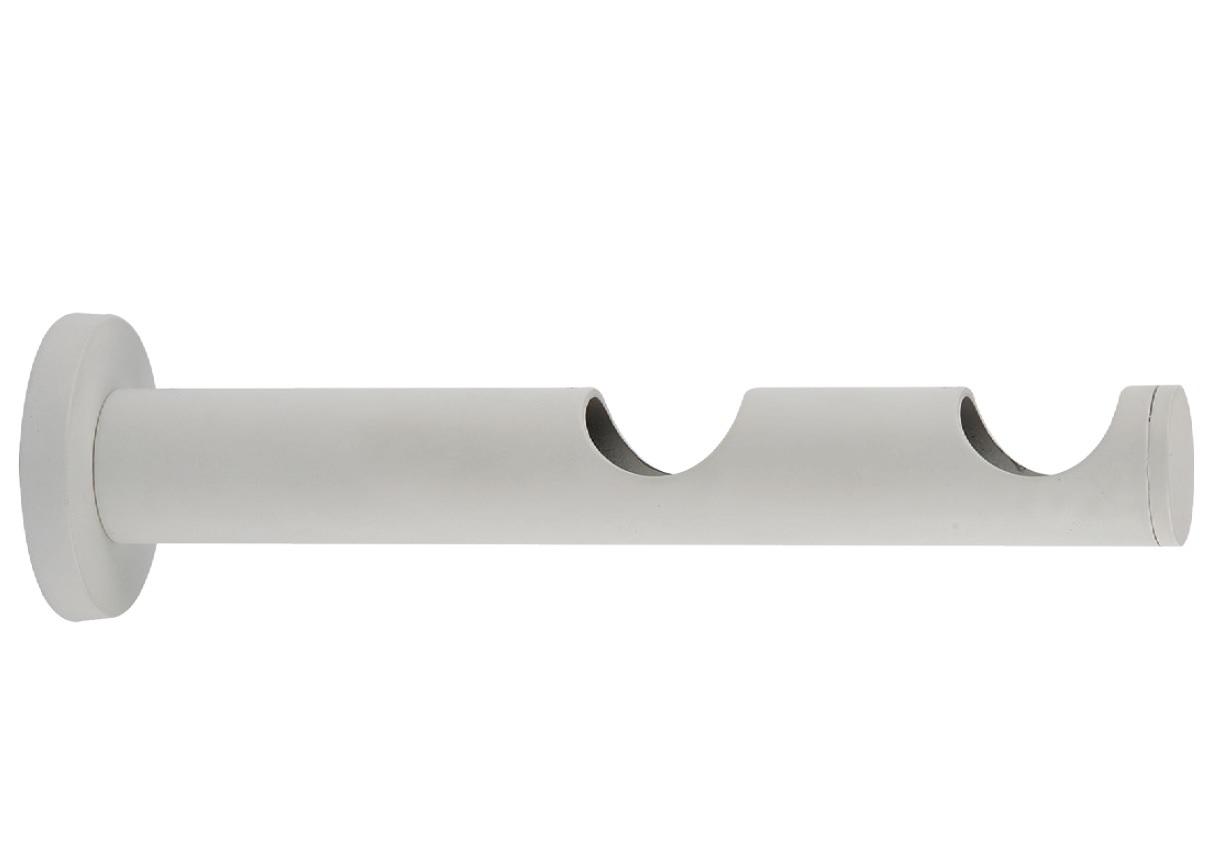 Κυλινδρικό διπλό στήριγμα για σωλήνες κουρτινόξυλου Φ.25 (πάχους 25mm) σε Λευκή απόχρωση.Το Ολικό Μήκος του είναι 18.2cm.