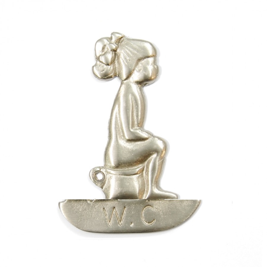 Χειροποίητη ιταλική ένδειξη σήμανση πόρτας μπάνιου WC για Γυναίκες σε Νίκελ απόχρωση κατασκευασμένο εξ'ολοκλήρου από ορείχαλκο (μπρούτζο) βαρέως τύπου.