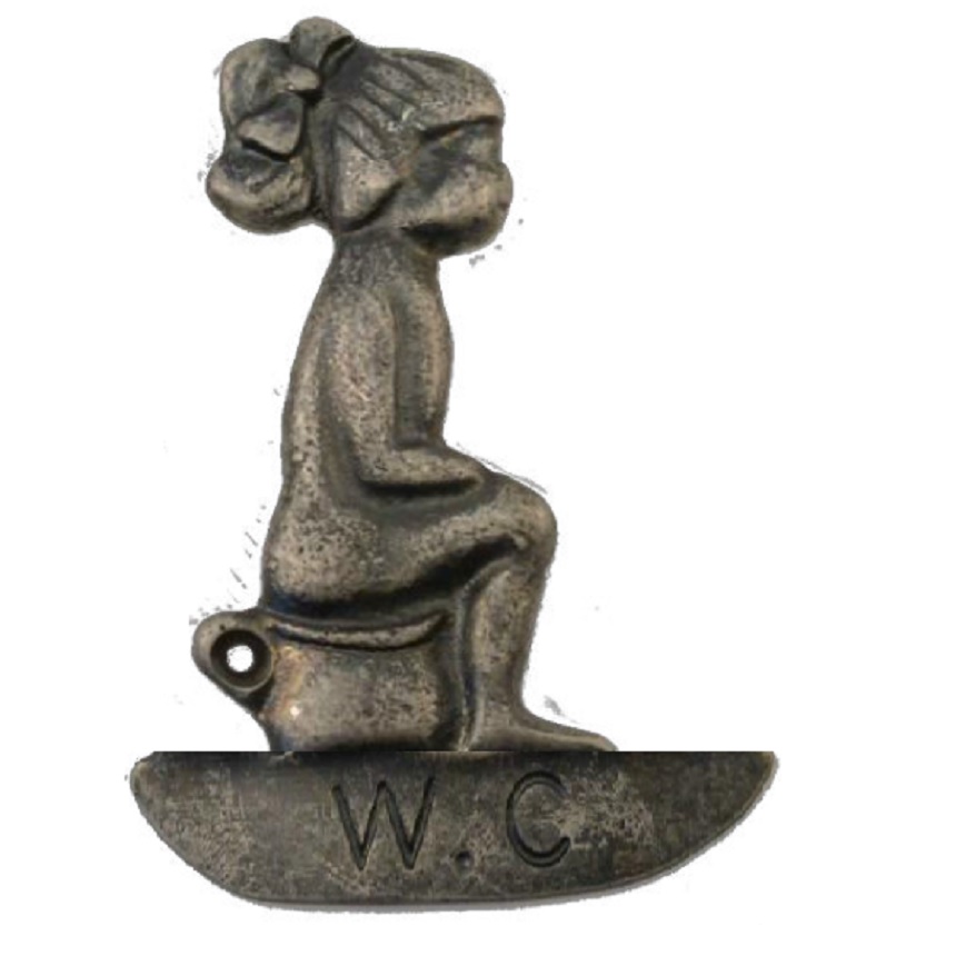 Χειροποίητη ιταλική ένδειξη σήμανση πόρτας μπάνιου WC για Γυναίκες σε Νίκελ Αντικέ απόχρωση κατασκευασμένο εξ'ολοκλήρου από ορείχαλκο (μπρούτζο) βαρέως τύπου.