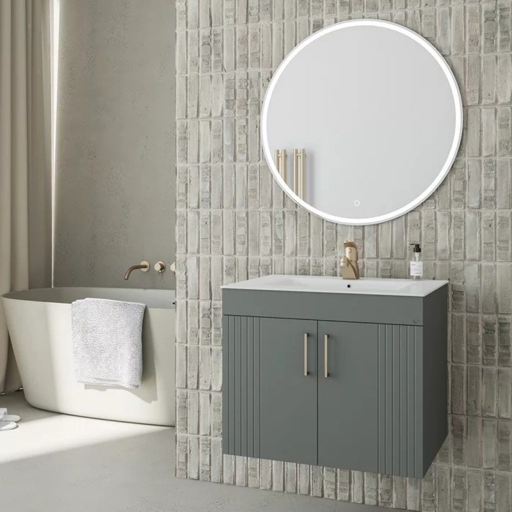 Μοναδικό εντυπωσιακό έπιπλο σε ανθρακί ματ φινίρισμα με 2 ντουλάπια με ιδιαίτερη αυλακωτή λεπτομέρεια στην άκρη του ντουλαπιού για ένα απαράμιλλο design.Ένα έπιπλο που προσελκύει τα βλέμματα με τις κομψές γραμμές του αποπνέοντας πολυτέλεια και κομψότητα. Η βάση του επίπλου διαθέτει 2 ανοιγόμενες πόρτες ντουλάπια με μεγάλο αποθηκευτικό χώρο και έχει διαστάσεις 60cm (πλάτος) x 45cm (προβολή από τον τοίχο) x 50cm (ύψος) και συνδυάζεται με κεραμικό νιπτήρα με λευκό γυαλιστερό φινίρισμα και διαστάσεις 61x46x19cm.Προτείνεται να συνδυαστεί για επιπλέον αποθηκευτικό χώρο με Κρεμαστή Στήλη με 2 ανοιγόμενες πόρτες με διαστάσεις 30cm(πλάτος) x26cm (προβολή από τοίχο) x120cm (ύψος).Δυνατότητα επιλογής και Καθρέφτη για την δημιουργία του απόλυτου Σετ και κουμπί αφής και με περιμετρικό φωτισμό LED με διάσταση Φ.70cm.