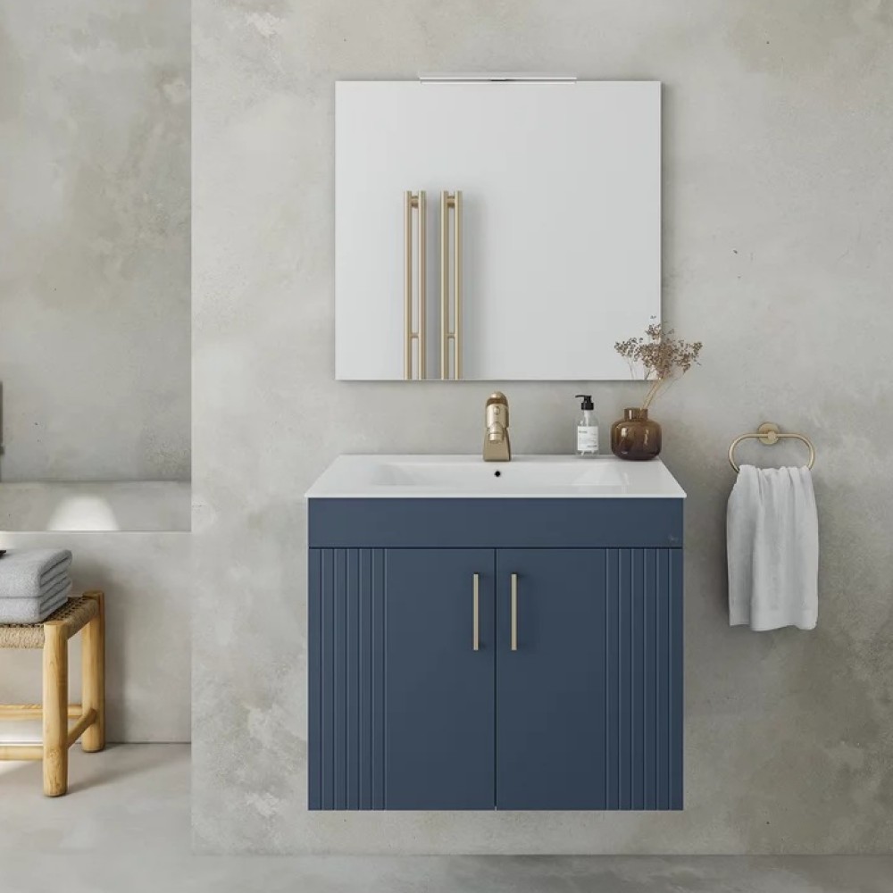 Έπιπλο Κρεμαστό με Νιπτήρα & 2 Ντουλάπια Fluted Orizon 60 Μπλε (60x45cm)