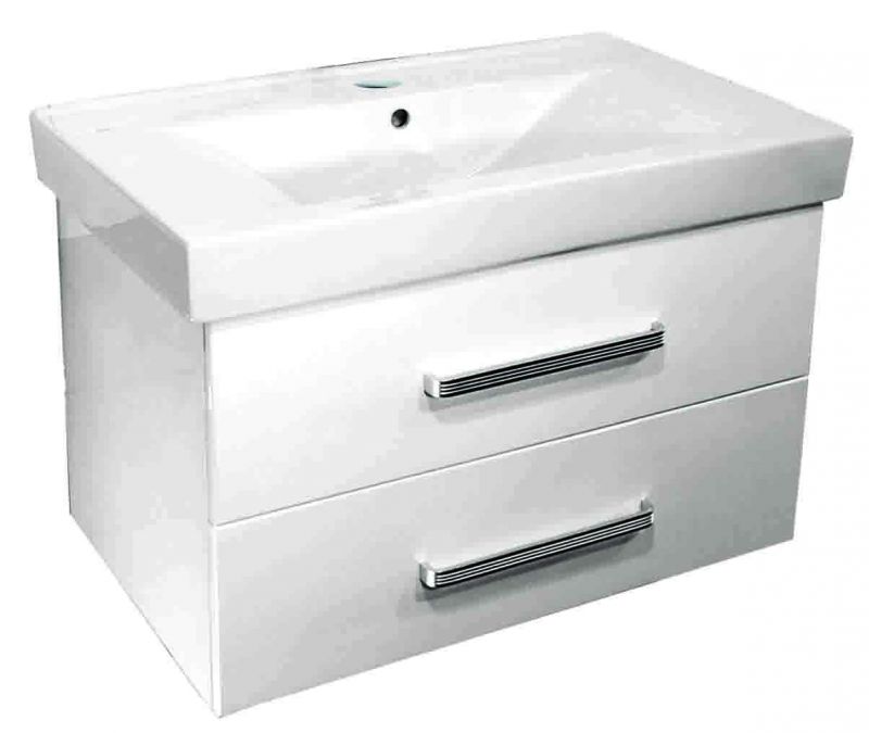 Έπιπλο Μπάνιου κρεμαστό σε Λευκή απόχρωση με 1 Νιπτήρα, & 2 Συρτάρια. Ο νιπτήρας είναι λευκός κατασκευασμένος από πορσελάνη έχει εξωτερικές διαστάσεις 80χ48cm.Το έπιπλο είναι σε Μπεζ Zebra απόχρωση κατασκευασμένο από άριστης ποιότητάς PVC το οποίο ενδείκνυται για μπάνιο και ανθίσταται σε υγρασίες. και έχει διαστάσεις 75,5χ44,5χ48,5cm.