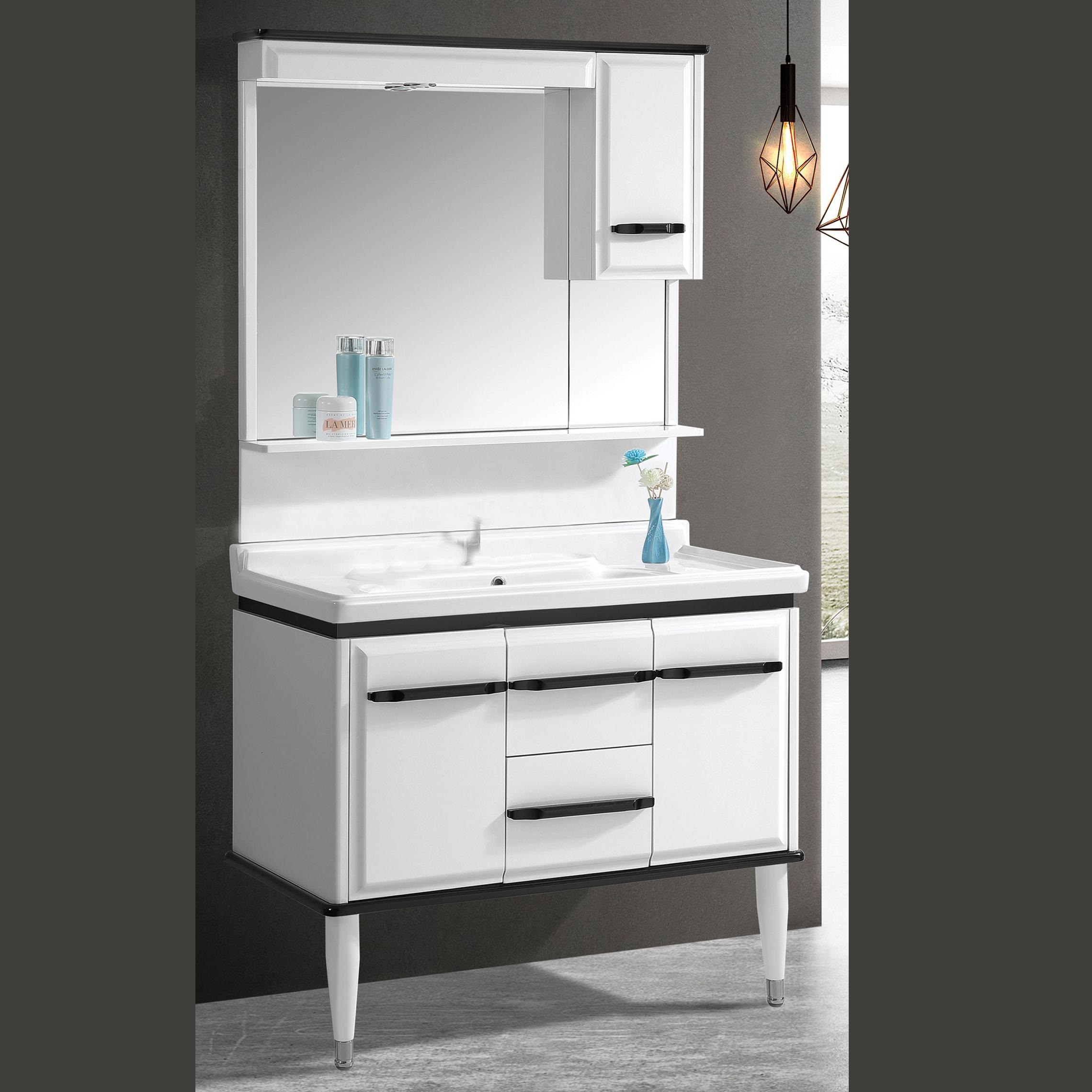 Έπιπλο μπάνιου σύνθεση με Νιπτήρα πορσελάνης (101x48cm) καθρέπτη Σετ με ντουλάπια. Ο πάγκος του επίπλου έχει διαστάσεις 99cm (Πλάτος) x 46cm (Μήκος) x 52cm (Ύψος).Ο καθρέφτης του επίπλου έχει διαστάσεις 100cm (Πλάτος )x 105cm (Ύψος).