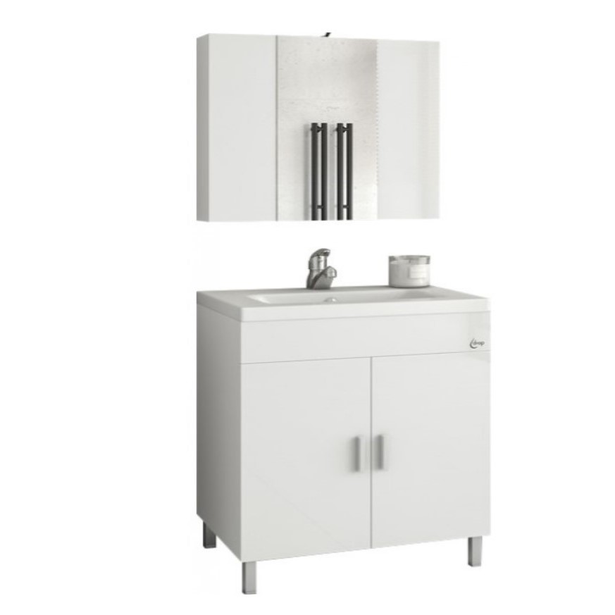 Επιδαπέδια βάση επίπλου διαστάσεων 70cm (πλάτος) x 80cm ( ύψος) x 39cm(προεξοχή από τον τοίχο) με 2 πόρτες και ενιαίο αποθηκευτικό χώρο σε Λευκό φινίρισμα. Διαθέτει νιπτήρα πορσελάνης άριστης τετράγωνου σχεδιασμού σε λευκό γυαλιστερό φινίρισμα με διαστάσεις (70x39cm) καθώς και καθρέφτη ντουλάπι με 3 πόρτες με διαστάσεις (60x57.5x12cm).Μοντέρνα και διαχρονική επιλογή που ταιριάζει μοναδικά σε κάθε μπάνιο.