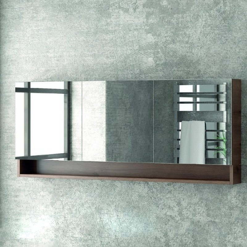 Ένα μοντέρνο κρεμαστό έπιπλο μπάνιου κατασκευασμένο σε εντυπωσιακό χρώμα με έντονα μοτίβα ξύλου με Λευκή Ματ επιφάνεια Solid Surface. Ένα προϊόν με τεράστια αντοχή στις υγρασίες και στα νερά από υλικό κατασκευής πράσινο άνθυγρο MDF υδατοαπωθητικό 18mm. Διαθέτει 2 συρτάρια με μεταλλικό σκελετό και σύστημα soft close με μεγάλο αποθηκευτικό χώρο ενώ έχει διαστάσεις 155cm (Πλάτος) x 40cm (Προβολή από τον τοίχο) x 46.5cm (Ύψος).Στην φωτογραφία προτείνεται να συνδυαστεί με 2 επικαθήμενους  νιπτήρες διπλής επισμάλτωσης λευκού γυαλιστερού φινιρίσματος με διαστάσεις 38.5x38.5cm (ο καθένας) ο οποίος διαθέτει οπή για μπαταρία, 2 ράφια ίδιου χρώματος με διαστάσεις 15cmx20cmx55cm για επιπλέον αποθηκευτικό χώρο ,καθώς και ένα μοναδικό καθρέφτη με επιπλέον αποθηκευτικό χώρο με 3 ντουλάπια και 1 ράφι με διαστάσεις 120x13x75cm.