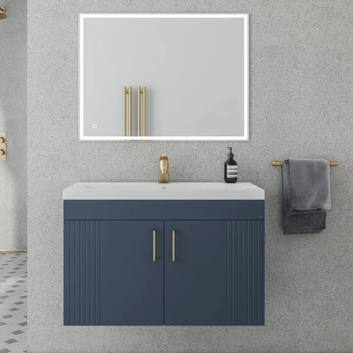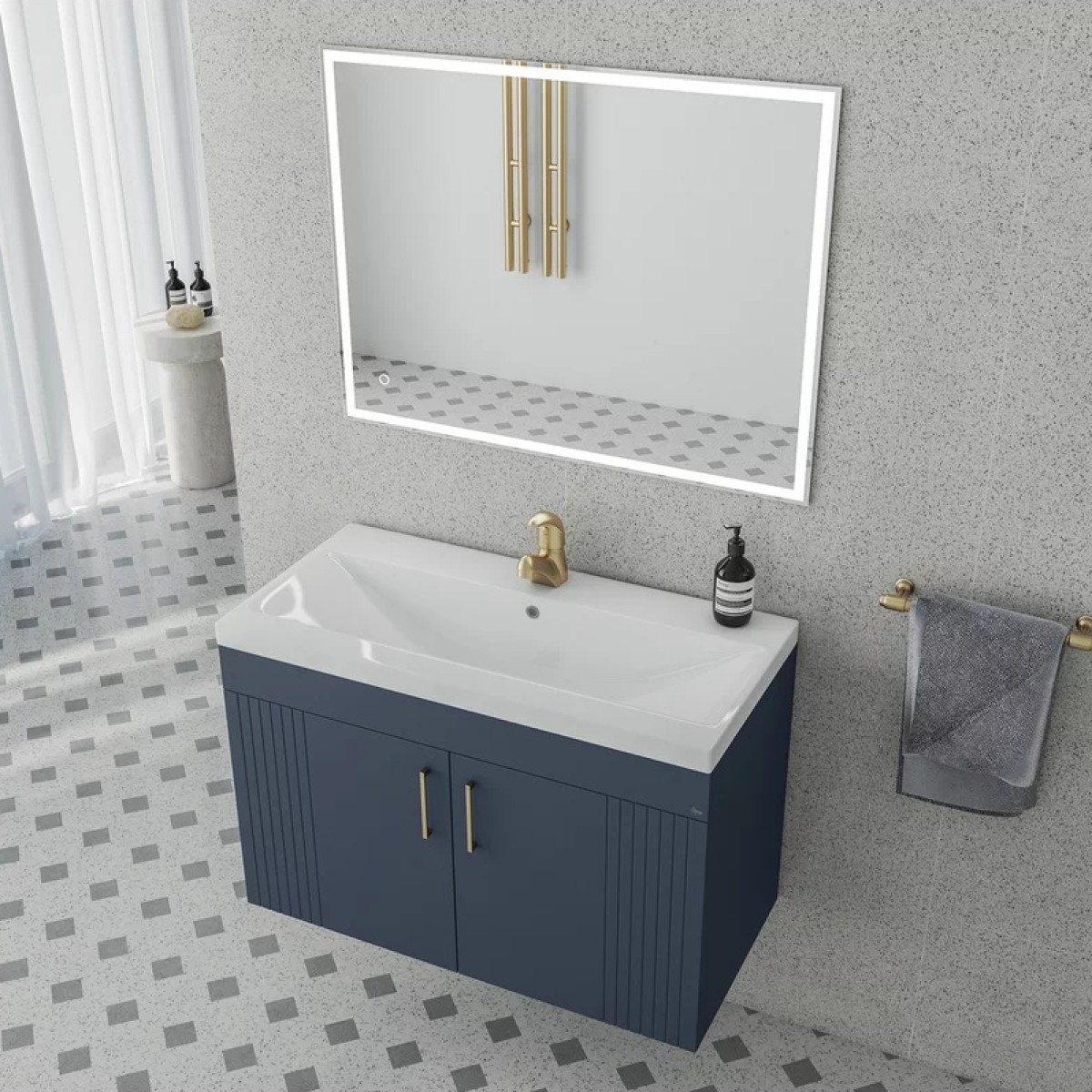 Έπιπλο Κρεμαστό με Νιπτήρα & 2 Ντουλάπια Fluted σειρά Monte Carlo 80 Μπλε (80x39cm)