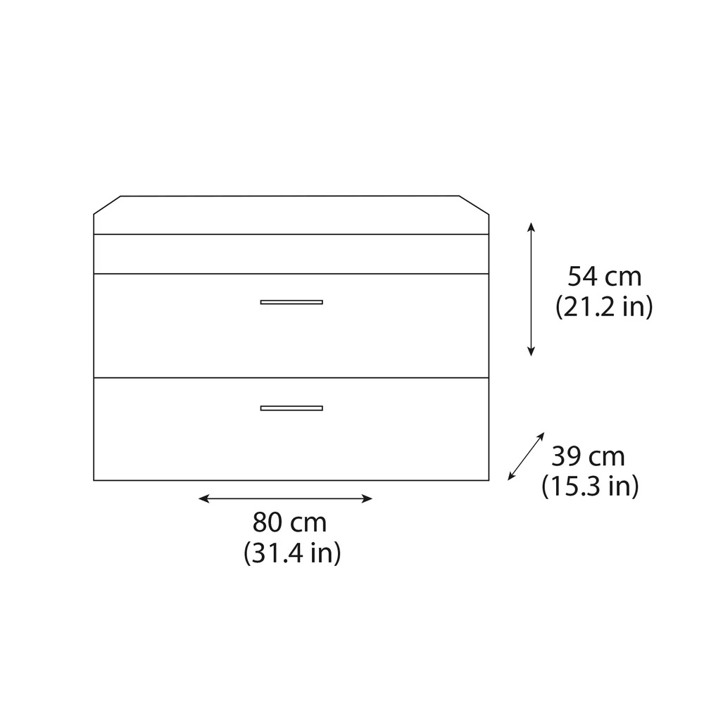 Μοναδικό εντυπωσιακό έπιπλο, ιδανικό για μικρά μπάνια με περιορισμένο χώρο, σε λευκό φινίρισμα με 2 συρτάρια και ιδιαίτερη αυλακωτή λεπτομέρεια στην άκρη του επίπλου για ένα απαράμιλλο design.Ένα έπιπλο που προσελκύει τα βλέμματα με τις κομψές γραμμές του αποπνέοντας πολυτέλεια και κομψότητα. Η βάση του επίπλου έχει διαστάσεις 80cm (πλάτος) x 39cm (προβολή από τον τοίχο) x 50cm (ύψος) και συνδυάζεται με κεραμικό νιπτήρα με λευκό γυαλιστερό φινίρισμα και διαστάσεις 80x39x17.5cm.Προτείνεται να συνδυαστεί για επιπλέον αποθηκευτικό χώρο με Κρεμαστή Στήλη με 2 ανοιγόμενες πόρτες με διαστάσεις 30cm(πλάτος) x26cm (προβολή από τοίχο) x120cm (ύψος).Δυνατότητα επιλογής και Καθρέφτη για την δημιουργία του απόλυτου Σετ και κουμπί αφής και με περιμετρικό φωτισμό LED με διάσταση 60x80cm. Σε περίπτωση επιλογής της Στήλης περιλαμβάνει 1 τεμάχιο