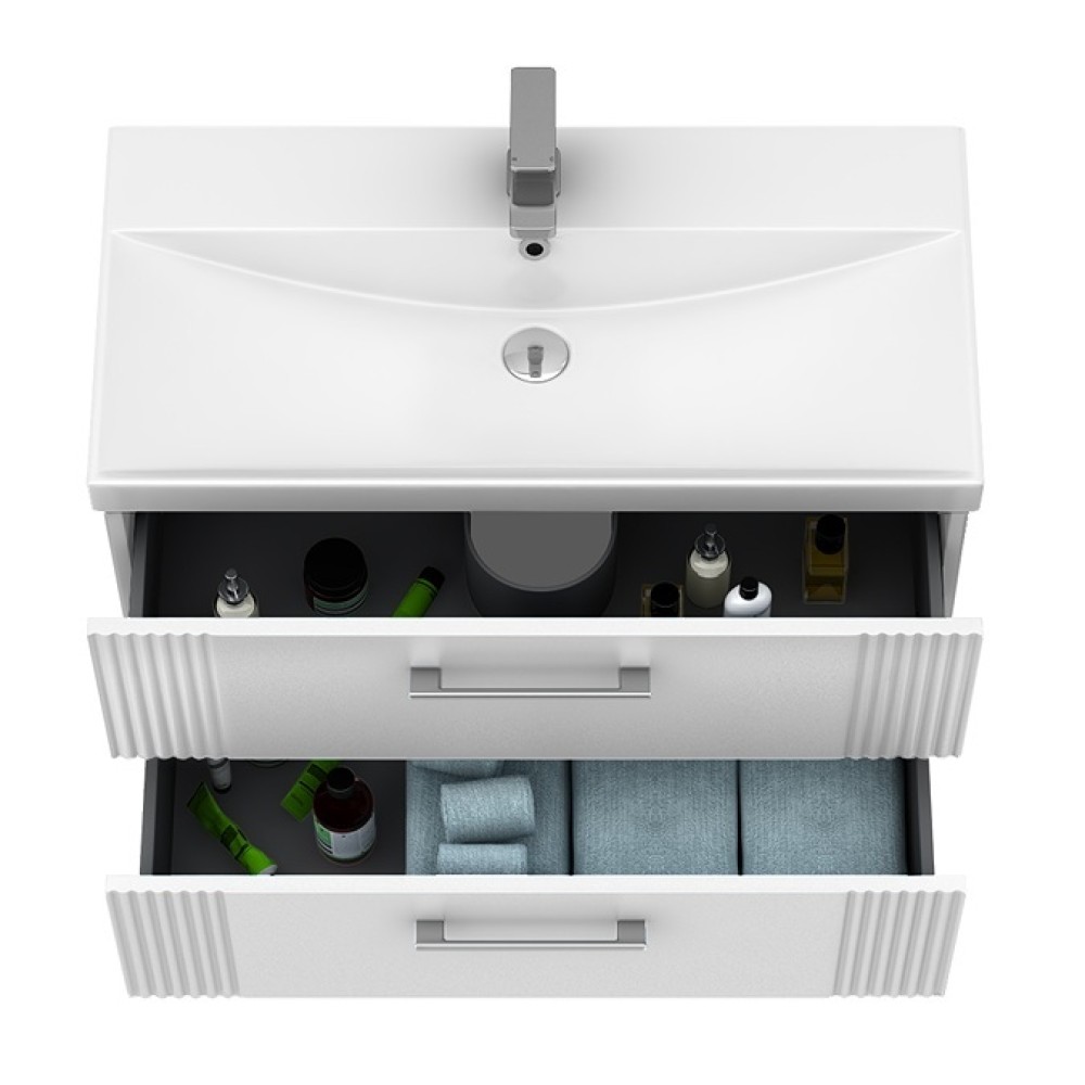 Έπιπλο με Νιπτήρα & 2 Συρτάρια Fluted σειρά Argolida 80 Λευκό Ματ (80x39cm)