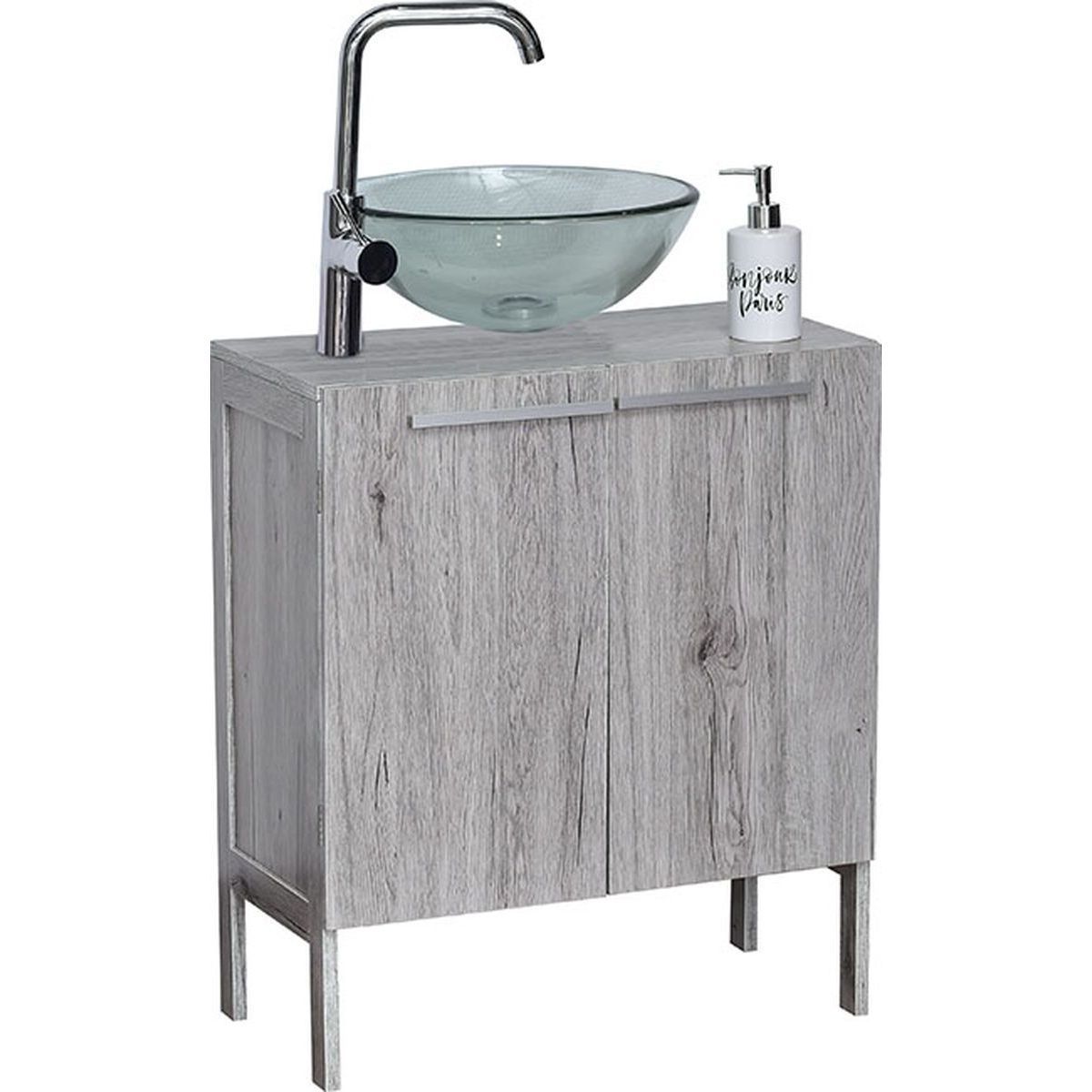 Έπιπλο μπάνιου από άριστης ποιότητας mdf με 2 ανοιγόμενες πόρτες & 1 ράφι σε μοντέρνα γκρι απόχρωση που ταιριάζει μοναδικά σε κάθε μπάνιο. Τοποθετείται στο δάπεδο και μπορεί να συνδυαστεί με επικαθήμενους νιπτήρες.Έχει διαστάσεις 73x34x11cm