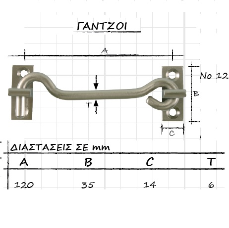 Γάντζος για πόρτες & παράθυρα από ορείχαλκο υλικό κατασκευής με ολικό μήκος 14cm.Διαθέσιμο σε 2 αποχρώσεις.
