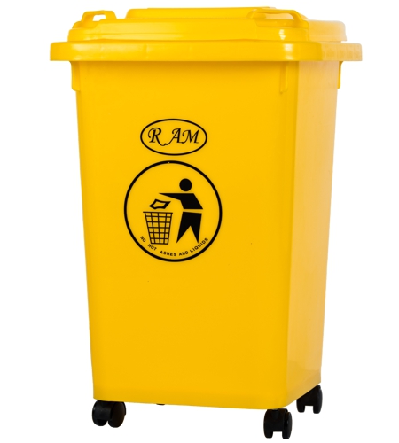 Πλαστικός κάδος της RAM, κατασκευασμένος από ABS. Διαθέτει ρόδες στην βάση του, για την εύκολη μετακίνηση του. Χρώμα: Κίτρινο με Χωρητικότητα: 50Ltr και Διαστάσεις: Μήκος: 44cm, Ύψος: 64cm, Πλάτος: 48cm.