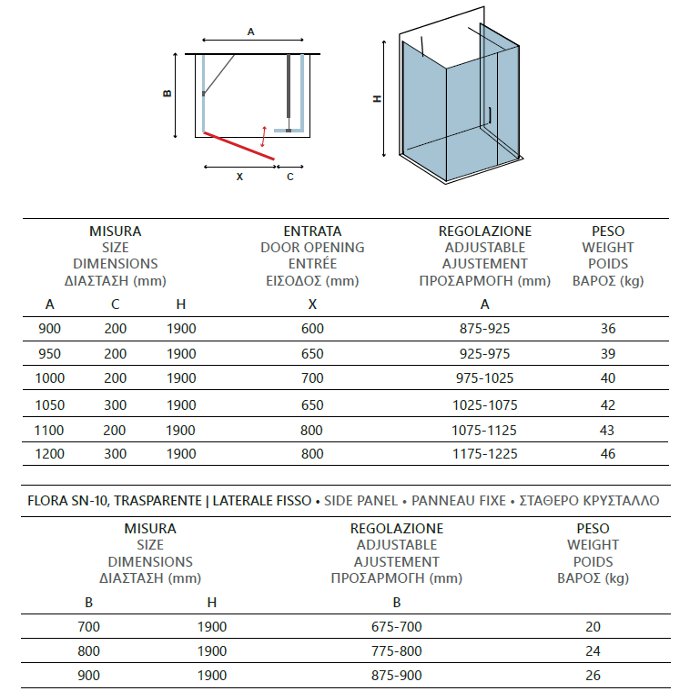 7. Σταθερό τζάμι με 1 ανοιγόμενη πόρτα και 2 σταθερά πλαϊνά SN-10, από κρύσταλλα ασφαλείας 6 χιλιοστών.