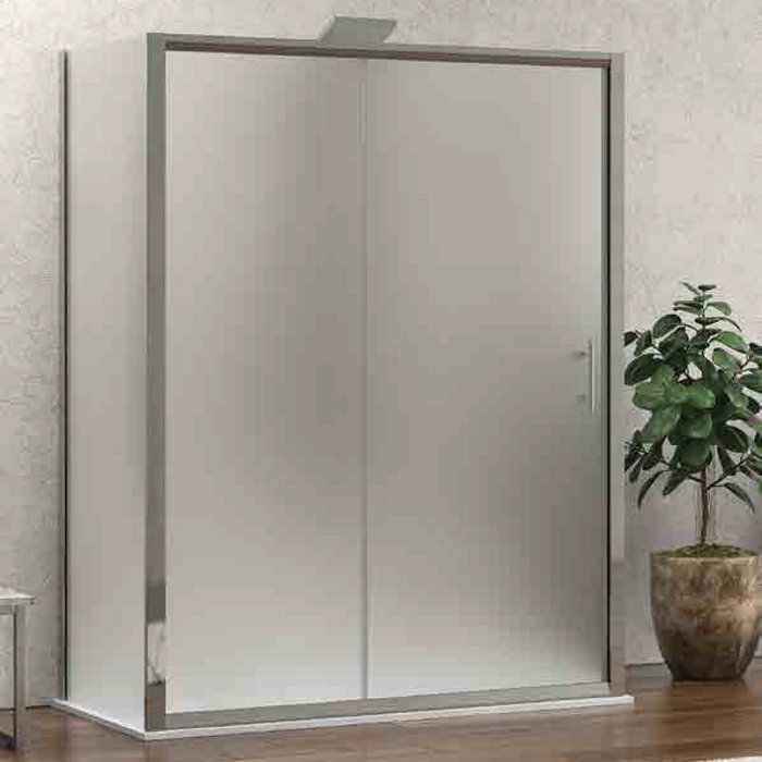 Μοντέρνα καμπίνα ντουζιέρας ελεύθερης τοποθέτησης συρόμενη, κατασκευασμένη από σατινέ αμμοβολισμένο κρύσταλλο ασφαλείας 6 χιλιοστών. Μια παραλληλόγραμμη καμπίνα μπάνιου σε σχήμα Π, με δυο πλαϊνά σταθερά πάνελ και ένα μπροστινό σταθερό με μια συρόμενη πόρτα, χρωμέ προφίλ ανοδιωμένου αλουμινίου, χρωμέ χερούλι και ειδική εφαρμογή Nanoskin στην εσωτερική επιφάνεια της. Διατίθεται σε 18 διαστάσεις με ύψος 190 εκατοστά. Στην τιμή δεν περιλαμβάνεται η ντουζιέρα και η στήλη ντους.