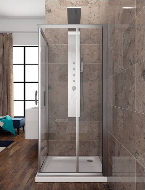 Μοντέρνα καμπίνα ντουζιέρας με διάφανο κρύσταλλο ασφαλείας 5,5 χιλιοστών. Μια καμπίνα μπάνιου συρόμενη, αποτελούμενη από δύο σταθερά πάνελ με δύο συρόμενες πόρτες, χρωμέ προφίλ ανοδιωμένου αλουμινίου, τέσσερα ροδάκια (δύο πάνω & δύο κάτω) και 2 χρωμέ χερούλια. Επιπρόσθετα, υπάρχει δυνατότητα επιλογής για εφαρμογή Nanoskin στην εσωτερική λεία επιφάνεια της καμπίνας. Διατίθεται σε διαφορετικές διαστάσεις.