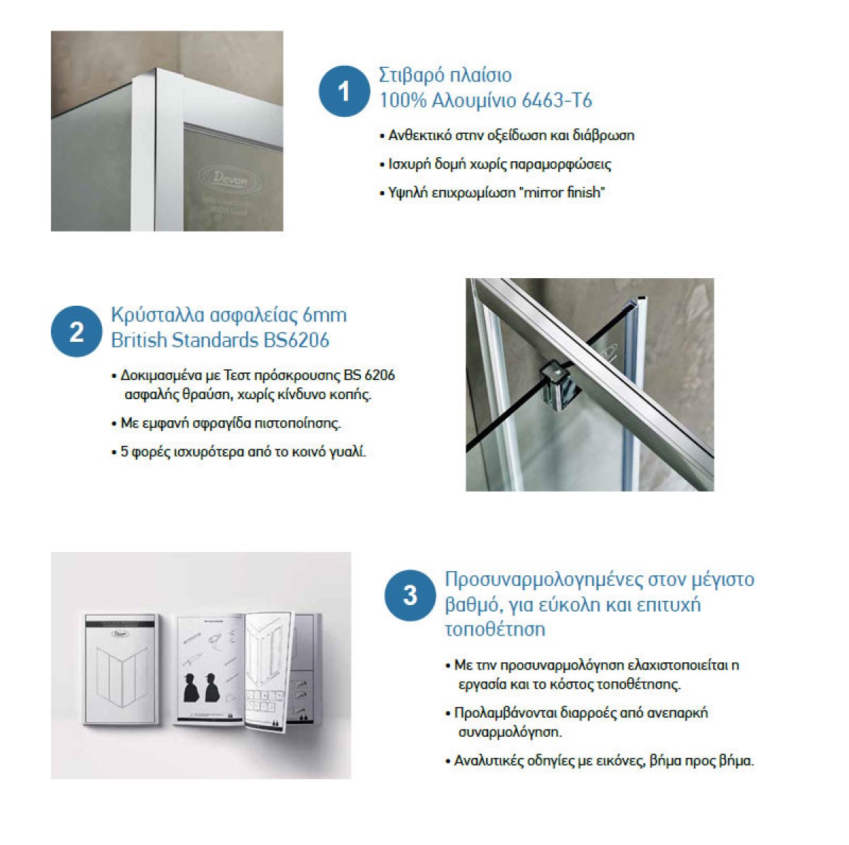 Κρύσταλλα ασφαλείας 6mm χιλιοστών 5 φορές ισχυρότερα από το κοινό γυαλί, με εμφανή σφραγίδα πιστοποίησης, δοκιμασμένα με τεστ κρούσης BS6206 με ασφαλής θραύση χωρίς κίνδυνο κοπής.