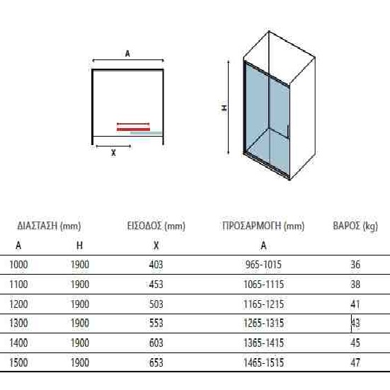 Καμπίνα Τοίχο Τοίχο Karag Argento ματ με 1 Συρόμενη Πόρτα & 1 Σταθερό σειρά Efe 400 (σε 6 διαστάσεις με Ύψος 190cm)