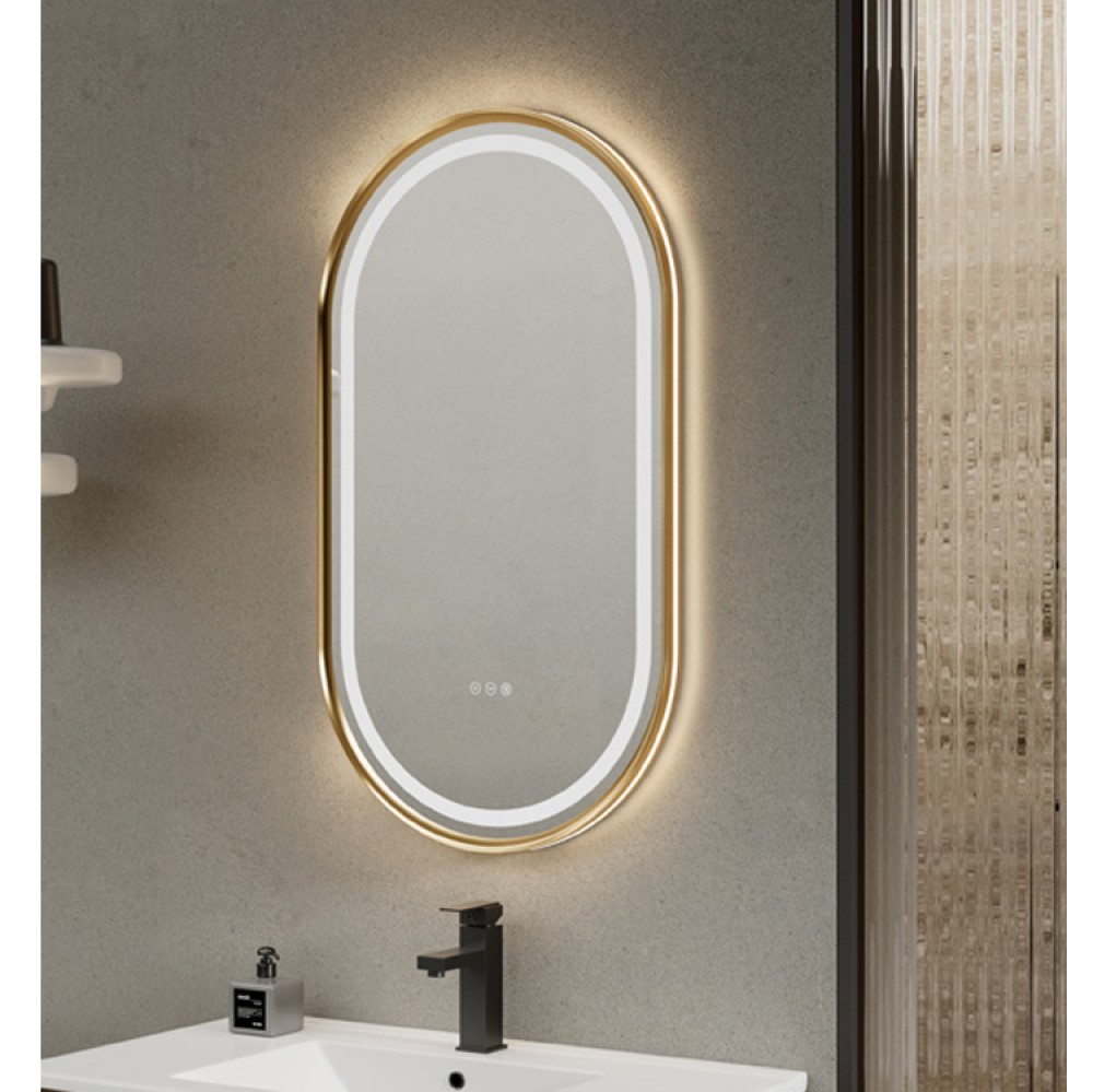 Καθρέφτης Οβάλ με Χρυσό Πλαίσιο & Ρυθμιζόμενο Led Karag Milano IRR6010Q (60x100cm)