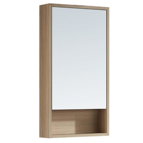 Καθρέπτης μπάνιου με 1 κρυφό Ντουλάπι με δεξί άνοιγμα και με ενσωματωμένη εταζέρα σε απόχρωση Ice River.Δεν διαθέτει ξύλινη πλάτη και έχει διαστάση 45.5χ13χ80cm