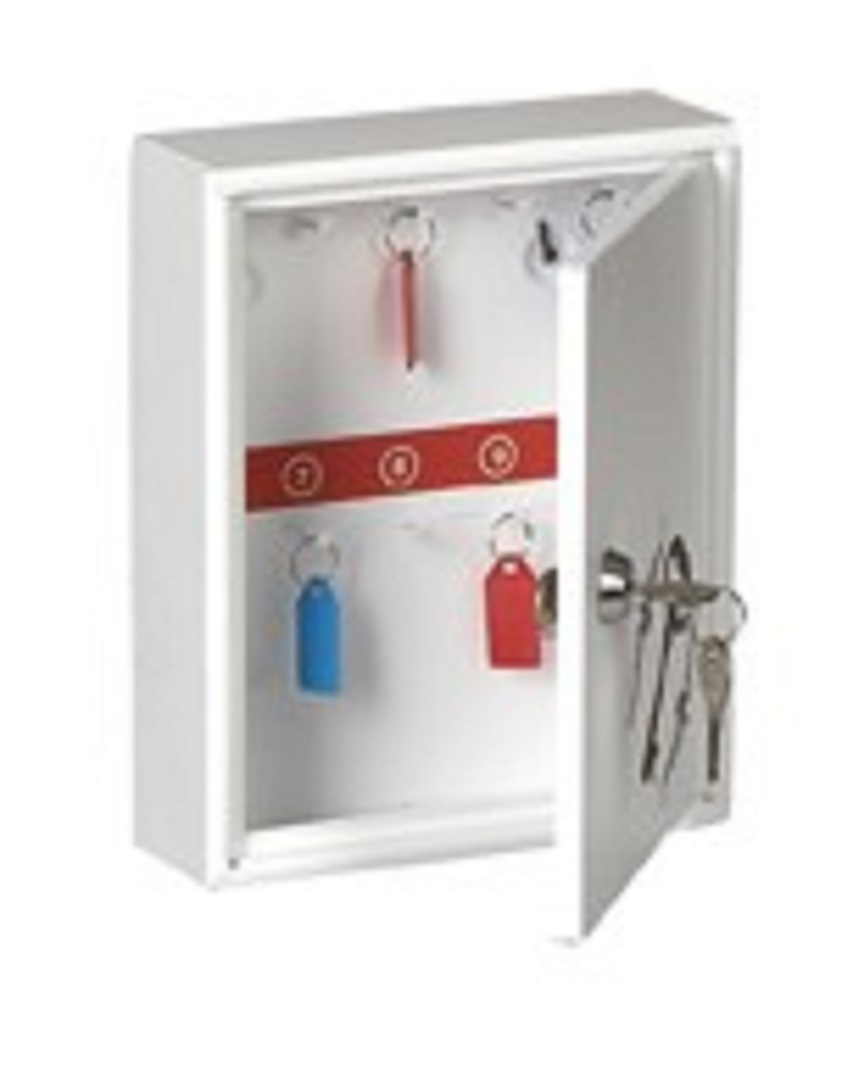 Συσκευασία: Περιλαμβάνει την κλειδοθήκη μαζί με τις βίδες,τα ούπα για την προσαρμογή του στον τοίχο καθώς και την κλειδαριά ασφαλείας μαζί με το εφεδρικό κλειδί.