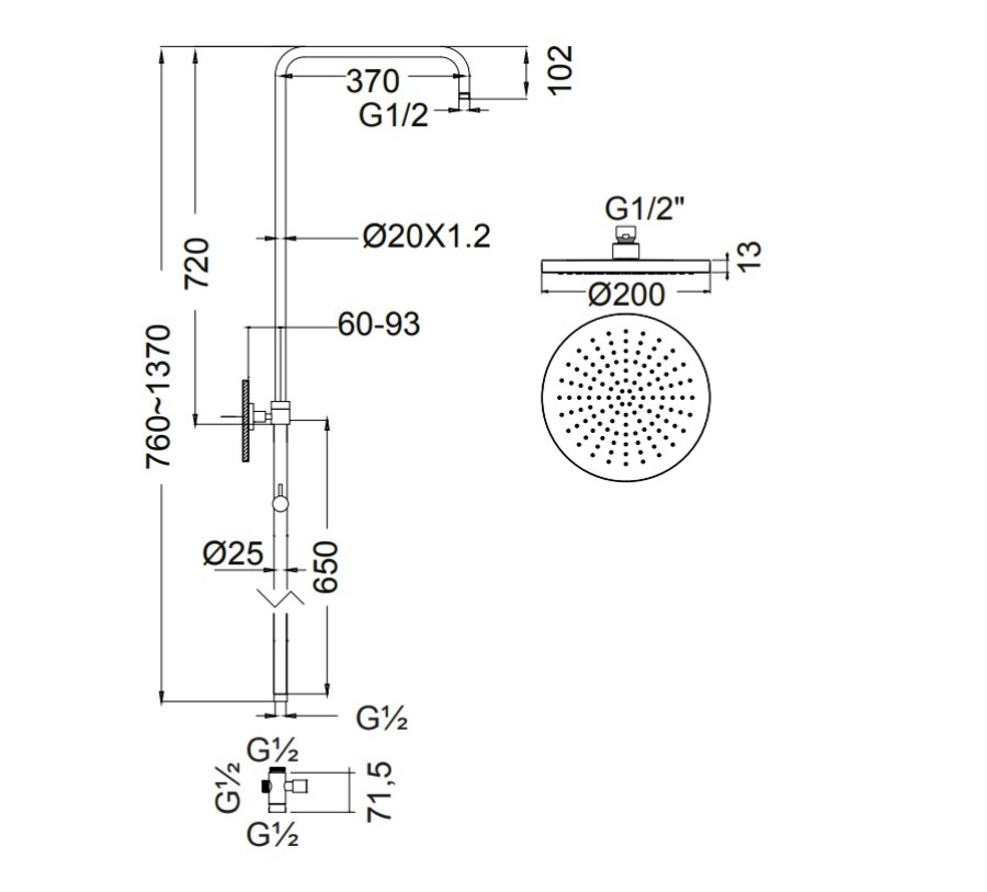 Περιλαμβάνει: Μπαταρία, κολώνα με ανακλινόμενη κεφαλή ντους anticalcare Ø 25cm, τηλέφωνο anticalcare, στήριγμα τηλεφώνου και άθραυστο σπιράλ 1,5m