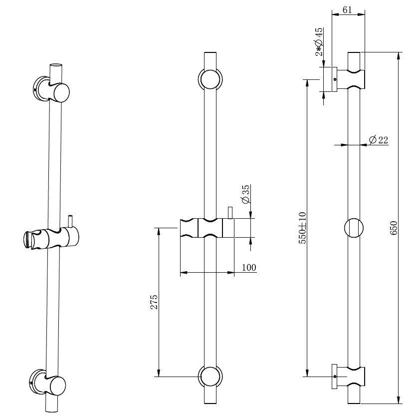 Κατασκευασμένη από Ανοξείδωτο Χάλυβα ατσάλι 316, με τεράστια αντοχή στην οξείδωση και την φθορά, ιδανικό για κλίμα ελληνικών νησιών με υγρασίες. Μια Κολόνα με Συρόμενο Στήριγμα για Συνδυασμό με Μπαταρία λουτρού.
