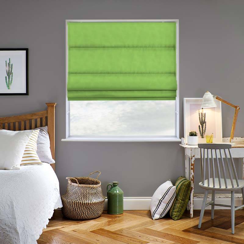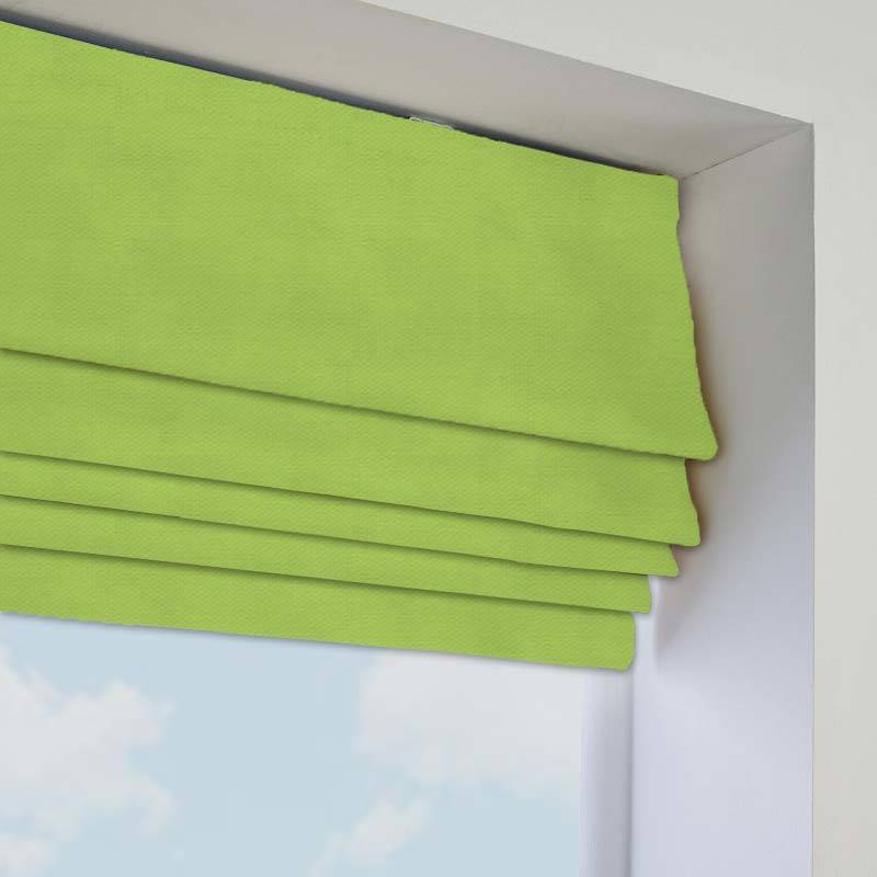 Οι ζωντανοί τόνοι αυτών των πράσινων λαχανί ρόμαν κουρτίνων , είναι εγγυημένοι για να φέρουν μια πολύχρωμη πινελιά και έναν αέρα ανανέωσης σε οποιοδήποτε παράθυρο του σπιτιού σας τοποθετηθούν. Επιτρέπουν την διείσδυση του φωτός ενώ είναι και ανθεκτικό στην υγρασία. Είναι ένα πολυεστερικό ύφασμα μερικής συσκότισης. Η τιμή περιλαμβάνει το ύφασμα πράσινου λαχανί χρώματος, τον μηχανισμό του ρόμαν ραμμένο μαζί με τις μπανέλες του, τα στηρίγματα στερέωσης και είναι έτοιμο προς τοποθέτηση. Η ελάχιστη χρέωση στα Ρόμαν Σκίασης είναι 1 μέτρο (στο πλάτος) x 1 μέτρο (στο ύψος).