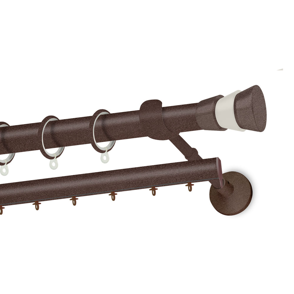 Κουρτινόξυλο χρωματιστό με Καφέ Σκουριάς διχρωμία άκρου με Λευκό πάγου με πάχος σωλήνα Φ.25.Επιβλητικό και Μοντέρνο design που θα αναβαθμίσει τον εσωτερικό σας χώρο, προσδίδοντας του μια ιδιαίτερη αίσθηση πολυτέλειας. Προσαρμόζεται και στις δικές σας διαστάσεις και κόβεται στα μέτρα σας κατόπιν παραγγελίας. Διατίθεται και σε διαστάσεις από 1.40 έως και 3.40 σε μονό κουρτινόξυλο ή διπλό με εσωτερικό σιδηρόδρομο αλουμινίου άλλα και σε διπλό με εσωτερικό σωλήνα Φ.20 (20 χιλιοστών).