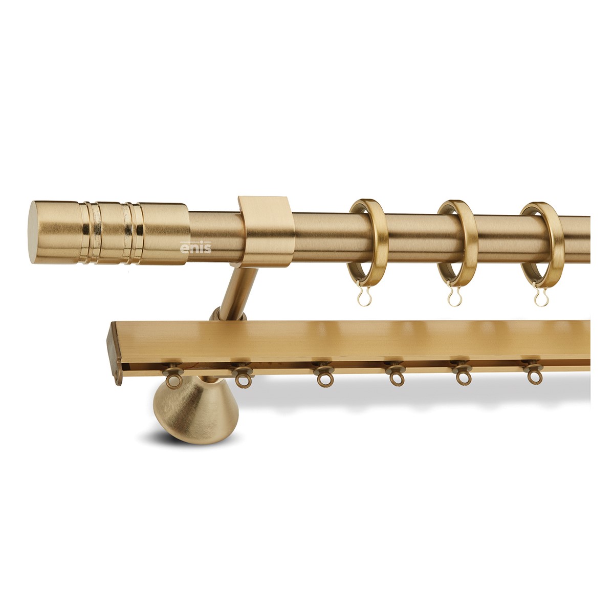 Απλή και απέριττη σειρά με πάχος σωλήνα Φ.25 και διακοσμητικά κυλινδρικά άκρα βαρέως τύπου σε απόχρωση Όρο ματ.Καταπληκτικό design που θα αναβαθμίσει τον εσωτερικό σας χώρο προσθέτοντας του μια απαράμιλλη κομψότητα αναδεικνύοντας και την παραμικρή λεπτομέρεια του.Διαθέσιμο σε 4 διαστάσεις (1.60m,2.00m,2.40m,3.00m.).Για Διπλές κουρτίνες διατίθεται και σε διπλό με εσωτερικό σιδηρόδρομο αλουμινίου, αλλά και σε διπλό με εσωτερικό σωλήνα Φ.20.Προσαρμόζεται και στις δικές σας διαστάσεις και κόβεται στα μέτρα σας κατόπιν παραγγελίας.