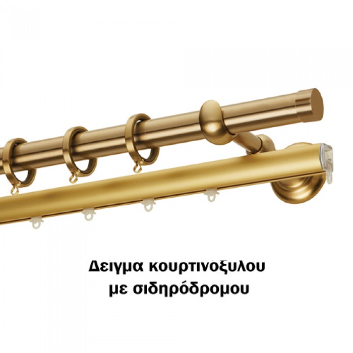 **Στην περίπτωση που επιλέξουμε διπλό κουρτινόξυλο με εσωτερικό σιδηρόδρομο περιλαμβάνει επίσης όλα τα απαραίτητα εξαρτήματα για την σωστή τοποθέτηση του(σιδηρόδρομο αλουμινίου,δύο τάπες, δύο στηρίγματα και δύο δακτυλίδια στήριξης σιδηροδρόμου).