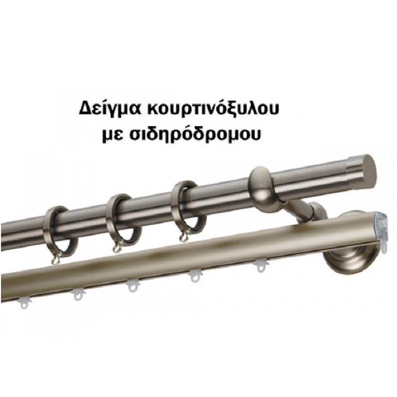 **Στην περίπτωση που επιλέξουμε διπλό κουρτινόξυλο με εσωτερικό σιδηρόδρομο περιλαμβάνει επίσης όλα τα απαραίτητα εξαρτήματα για την σωστή τοποθέτηση του(σιδηρόδρομο αλουμινίου,δύο τάπες, δύο στηρίγματα και δύο δακτυλίδια στήριξης σιδηροδρόμου)