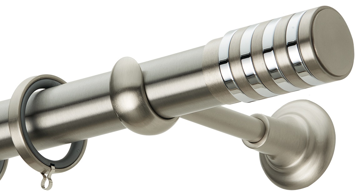 Επιβλητική σειρά από την Prestige Collection της εταιρίας Ζωγομετάλ με πάχος σωλήνα Φ.35 και διακοσμητικά δίχρωμα άκρα βαρέως τύπου, σε απόχρωση Νίκελ ματ/Χρώμιο.Καταπληκτικό design που θα αναβαθμίσει τον εσωτερικό σας χώρο προσθέτοντας του μια απαράμιλλη κομψότητα αναδεικνύοντας και την παραμικρή του λεπτομέρεια.Διαθέσιμο σε 4 διαστάσεις (1.60m,2.00m,2.50m,3.00m).Για διπλές κουρτίνες διατίθεται,είτε σε διπλό με εσωτερικό σιδηρόδρομο αλουμινίου, είτε σε διπλό με εσωτερικό σωλήνα Φ.20.Προσαρμόζεται και στις δικές σας διαστάσεις και κόβεται στα μέτρα σας κατόπιν παραγγελίας.