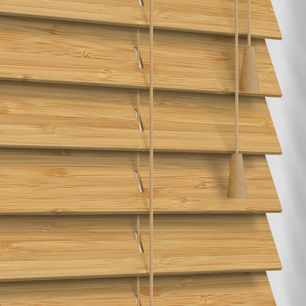 Οριζόντιες περσίδες ξύλου, φάρδους 50mm και πάχους 2.5mm. Κατασκευασμένες από φυσικό ξύλο Abachi.