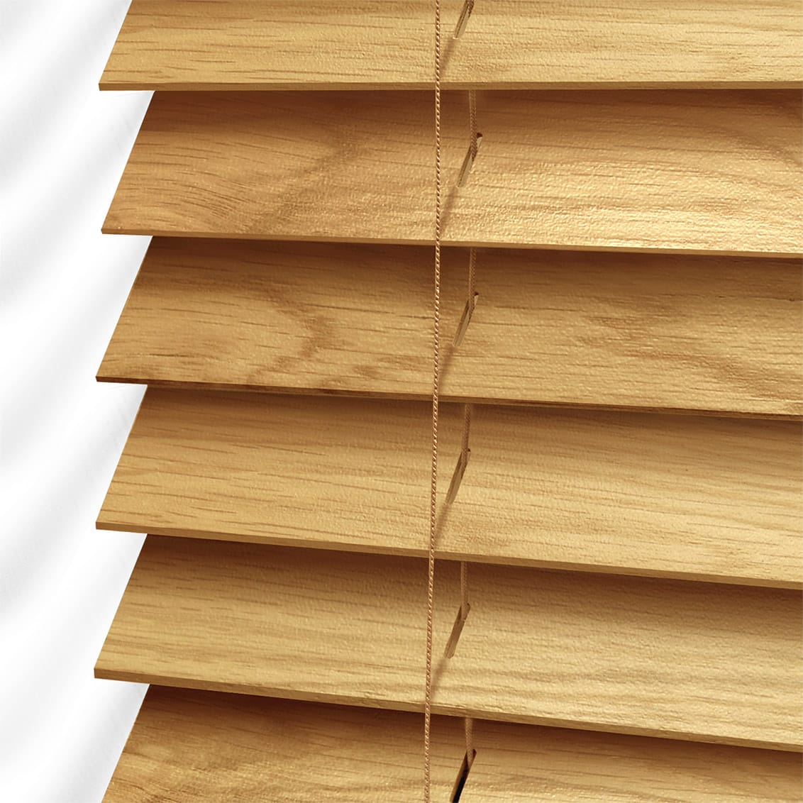 Οριζόντιες περσίδες ξύλου, φάρδους 50mm και πάχους 2.5mm. Κατασκευασμένες από φυσικό ξύλο Abachi.