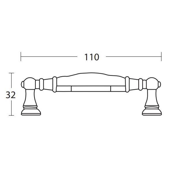 Λαβίτσα επίπλου από υλικό κατασκευής πορσελάνη σε Αντικέ Ορειχάλκινο φινίρισμα με ιβουάρ πορσελάνης για έναν μοναδικό νεοκλασικό και vintage τόνο στα έπιπλα σας. Έχει διαστάσεις 11cm (Ολικό Μήκος) και 9.6cm (Κέντρα Βίδας).
