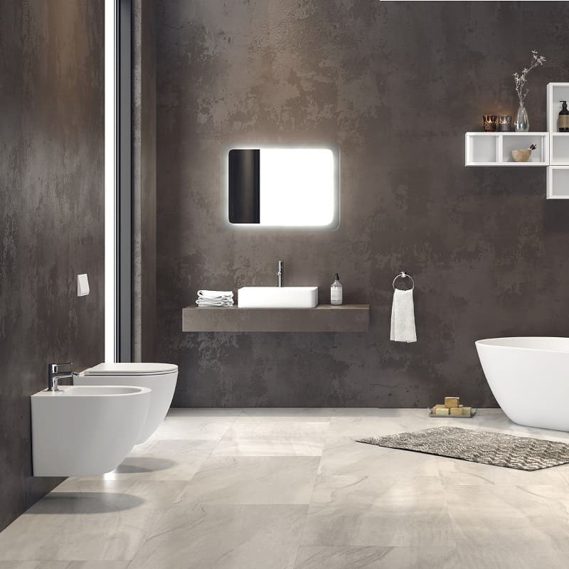 Κρεμαστή λεκάνη τουαλέτας σε λευκό γυαλιστερό φινίρισμα. Διαθέτει τεχνολογία Rimless για έκπλυση χωρίς εσωτερικό χείλος, Κάλυμμα βαρέως τύπου, αποσπώμενο με μηχανισμό Soft Close. Διαστάσεις : 49cm x 37cm. Διαθέτει κρυφό σύστημα στερέωσης και συνδυάζεται με όλα τα εντοιχιζόμενα καζανάκια.