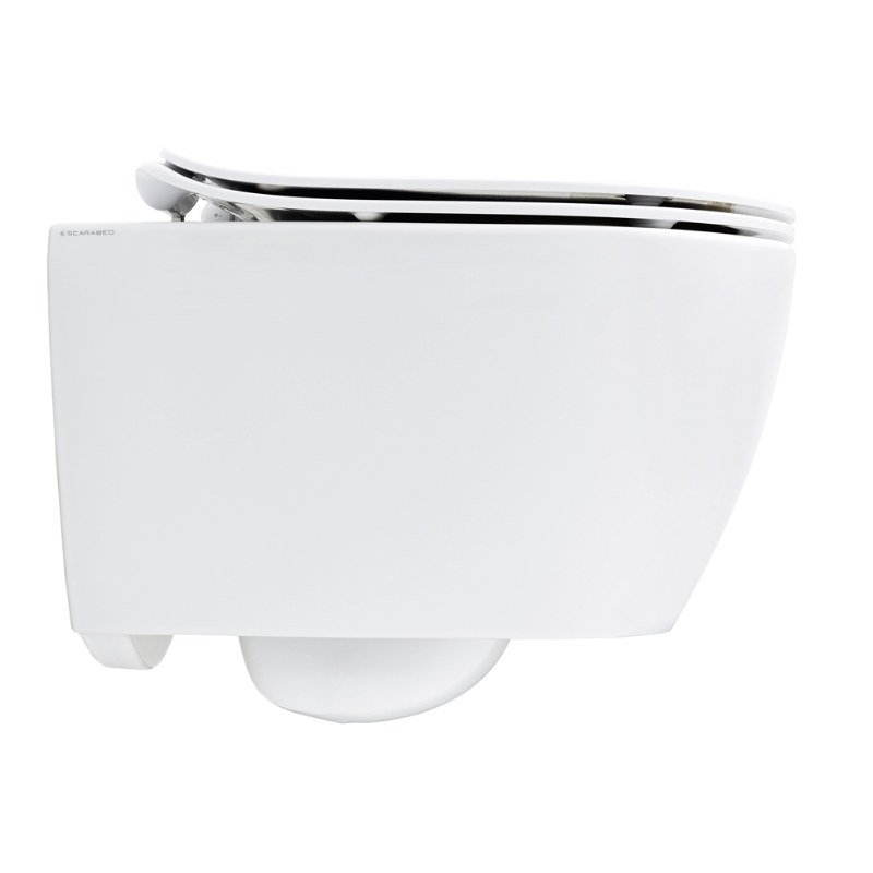 Κρεμαστή λεκάνη του Ιταλικού οίκου Scarabeo με τεχνολογία rimless CleanFlush® με λεία εσωτερική επιφάνεια που εξασφαλίζει αποτελεσματική έκπλυση, υγιεινό περιβάλλον και εύκολο καθαρισμό. Κατασκευασμένη από άριστης ποιότητάς πορσελάνη με Λευκό φινίρισμα με προβολή 50.5cm.Η συσκευασία συμπεριλαμβάνει και κάλυμμα βακελίτη slim αποσπώμενο.