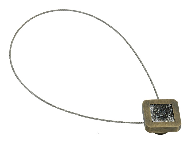 Μαγνητικό τετράγωνο αμπράζ για κουρτίνες σε Μπρονζέ απόχρωση με προσθήκη μαύρων strass κρυστάλλων Swarovski.Μοντέρνο σχεδιαστικά ταιριάζει ιδανικά σε κάθε σπίτι.Απαραίτητο εξάρτημα που χρησιμοποιείται για την στήριξη και συγκράτηση των φύλλων της κουρτίνας σας.