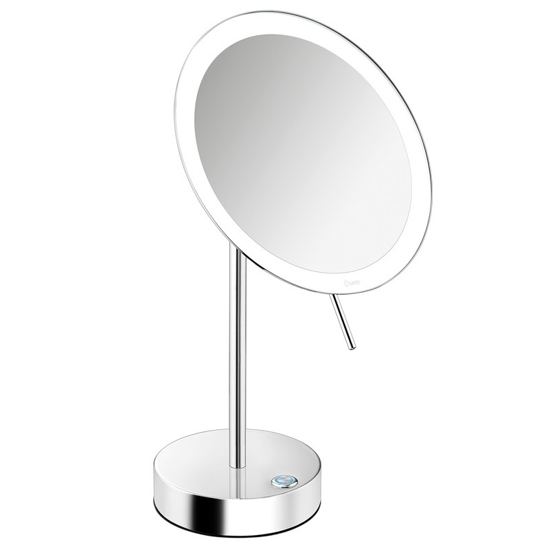 Καθρέπτης πολυτελείας μεγεθυντικός x 4 φορές σε Χρωμέ φινίρισμα από 100% ορείχαλκο υλικό κατασκευής, με τεχνολογία αφής και φωτισμό Led.Λειτουργεί με 4 αλκαλικές μπαταρίες κα είναι μέγιστη αντοχή στην οξείδωση και στην φθορά. Έχει Διαστάσεις 20 x 12 x 36.5cm
