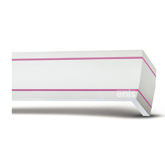 Μεταλλική μετόπη για κουρτίνες σε λευκό με ροζ κορδόνι. Κατασκευάζεται σε οποιαδήποτε διάσταση επιθυμείτε κατόπιν παραγγελίας και κόβεται στα μέτρα σας.Στην τιμή δε συμπεριλαμβάνεται ο σιδηρόδρομος..Έχει Πλάτος: 9cm και Φάρδος: 15,50cm.