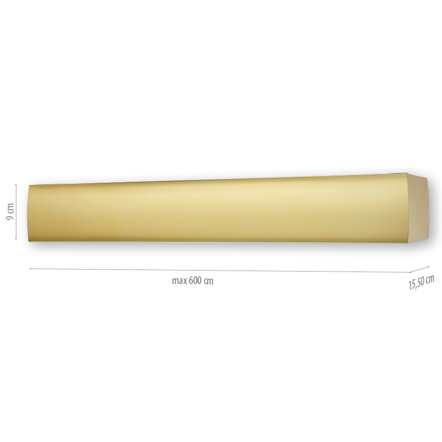 Μεταλλική μετόπη για κουρτίνες σε Χρυσό ματ φινίρισμα.Κατασκευάζεται σε οποιαδήποτε διάσταση επιθυμείτε κατόπιν παραγγελίας και κόβεται στα μέτρα σας.Στην τιμή συμπεριλαμβάνεται και σιδηρόδρομος 4.5cm.Έχει Πλάτος: 9cm και Φάρδος: 15,50cm.Το προφίλ της μετόπης είναι ελαφρώς πομπέ.