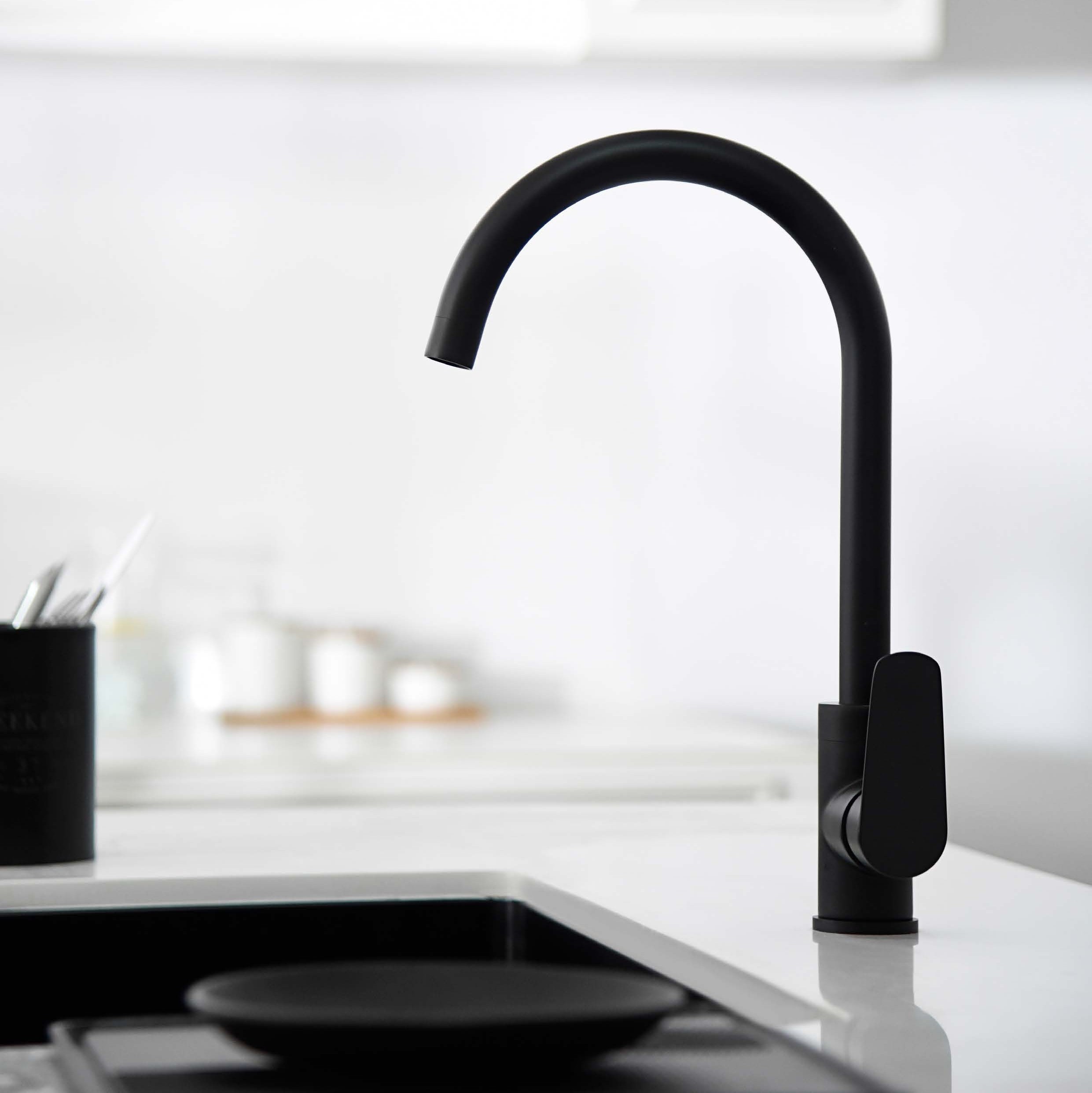 Μια μοντέρνα Μπαταρία κουζίνας με διαχρονικό σχεδιασμό σε τελικό επίθεμα Μαύρο Ματ φινίρισμα. Μια μπαταρία Ισπανικής προέλευσης της εταιρίας Imex που διαθέτει κεραμικούς δίσκους 30mm, ορειχάλκινο κορμό και περιστροφικό ρουξούνι. Διαθέτει 37.3cm Ολικό ύψος με 25.5cm ύψος ροής νερού και πλάτος ροής νερού 20.3cm.