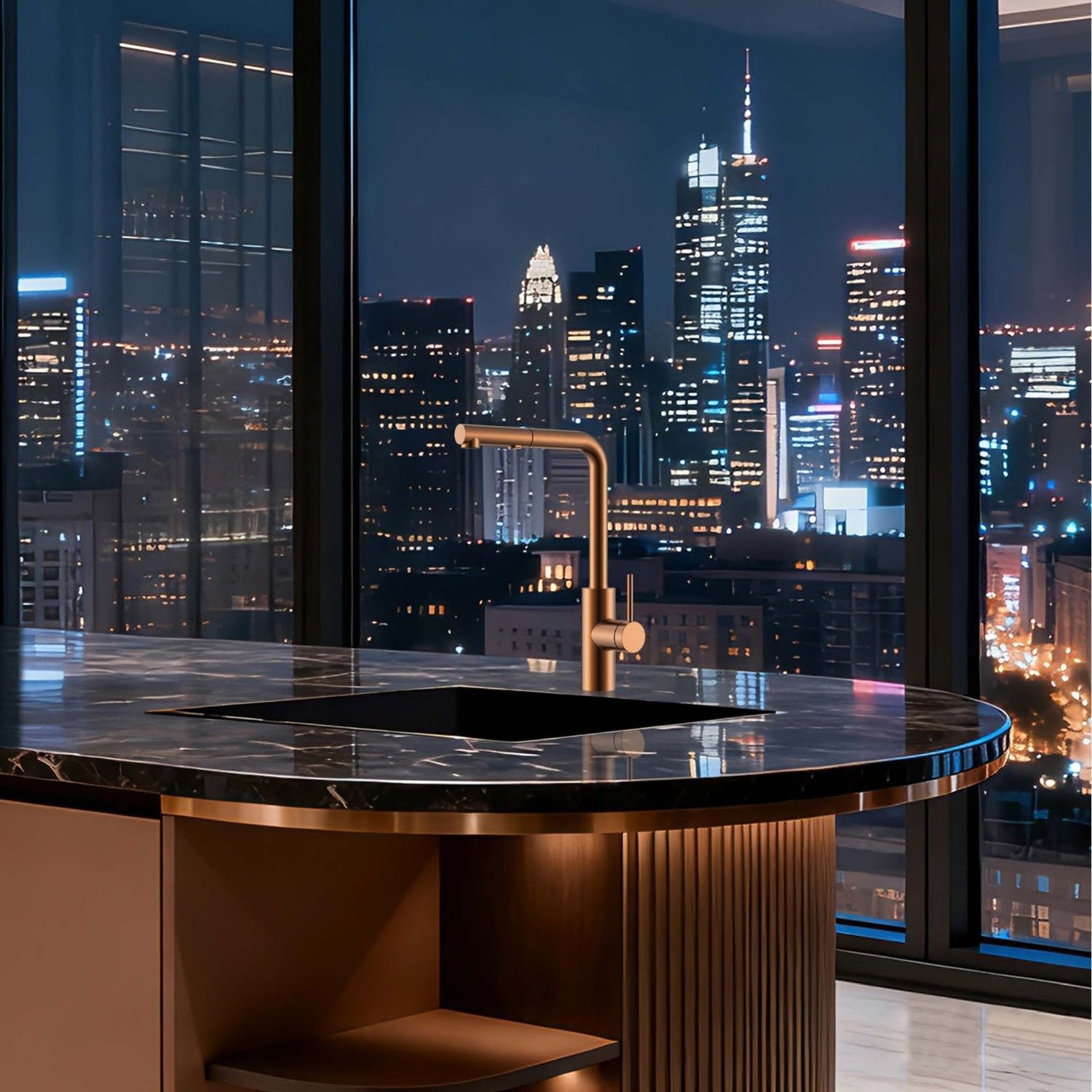 Μια ιδιαίτερη Μπαταρία κουζίνας με άκρως μοντέρνα και minimal σχεδιασμό σε (Rose Gold) Ροζ Χρυσό Ματ τελικό επίθεμα με ορειχάλκινο κορμό και αποσπώμενο τηλέφωνο με σπιράλ 2 λειτουργιών βροχή και ντους. Διαθέτει 39cm Ολικό ύψος και πλάτος ροής νερού 23.7cm. Το φινίρισμα της μπαταρίας διαθέτει ειδική επίστρωση PVD, μια φυσική εναπόθεση ατμών που αυξάνει κατά πολύ την διάρκεια ζωής του προιόντος.