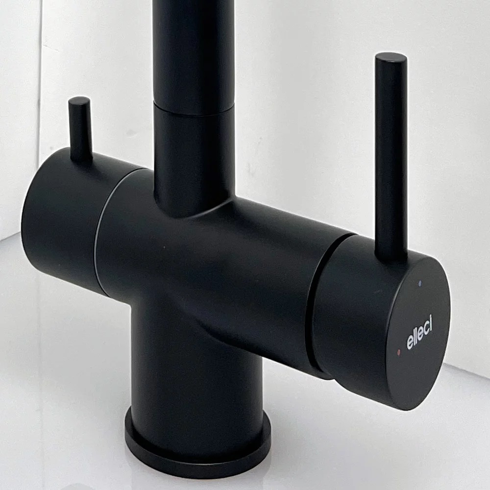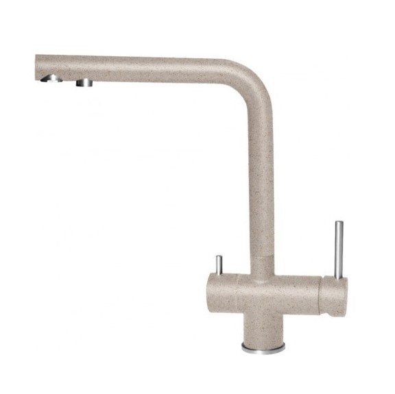 Αναμεικτική μπαταρία κουζίνας, διπλής παροχής, ιταλικής προέλευσης της εταιρίας Elleci, κυλινδρικού σχεδιασμού, σε Avena φινίρισμα. Διαθέτει περιστρεφόμενο ρουξούνι (φίλτρου) και έχει Διάμετρο οπής Φ.35,έχει Ολικό ύψος 32.7cm, ύψος ροής νερού 29.2cm και πλάτος 22.1cm.Το σύστημα φιλτραρίσματος Elleci μετατρέπει τη μπαταρία της κουζίνας σε πηγή φρέσκου, καθαρού νερού. Μια μπαταρία με σύστημα φιλτραρίσματος μειώνει την περιεκτικότητα σε βαρέα μέταλλα , χλώριο και άλατα στο νερό της βρύσης και είναι πρακτική στη χρήση καθώς το φίλτρο συνδέεται απευθείας με το δίκτυο νερού. Με αυτόν τον τρόπο, παρέχει φιλτραρισμένο νερό όπου χρειάζεται. Το ανταλλακτικό φίλτρο εξασφαλίζει χωρητικότητα 4.000 λίτρων (συνίσταται αντικατάσταση τουλάχιστον μια φορά το χρόνο)