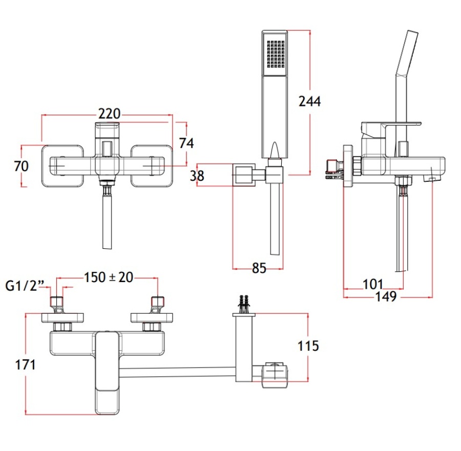 Μοντέρνα αναμεικτική μπαταρία μπάνιου λουτρού της ιταλικής εταιρίας Eurorama κατασκευασμένη εξ 'ολοκλήρου από ατόφιο Ορείχαλκο, σε τετράγωνο minimal σχεδιασμό με Μαύρο Ματ φινίρισμα ιδανική περίπτωση για ένα μοντέρνο μπάνιο. Συμπεριλαμβάνεται η μπαταρία με το τηλέφωνο anticalcare,επίτοιχο στήριγμα τηλεφώνου και PVC σπιράλ 1.5 μέτρου.